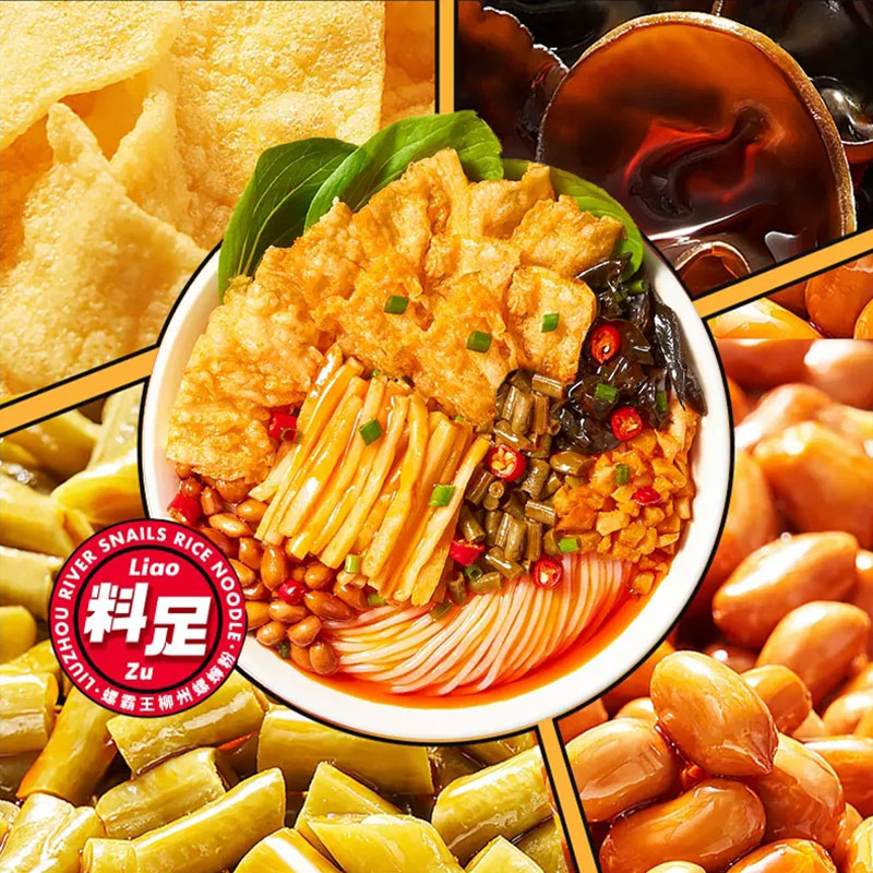 配料:調制干米粉包、湯料包、辣椒油配料包、酸筍配料包、腐竹配料包、花生配料包、酸醋包、酸豆角黑木耳配料包、鵪鶉蛋